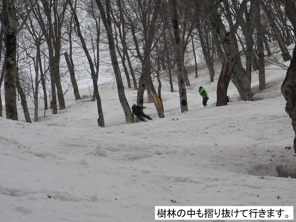 らも結局滑りきる皆はやっぱり凄いと思う。一しきり下ってから尾根へ登り返す。一息入れ尾根を樹林を