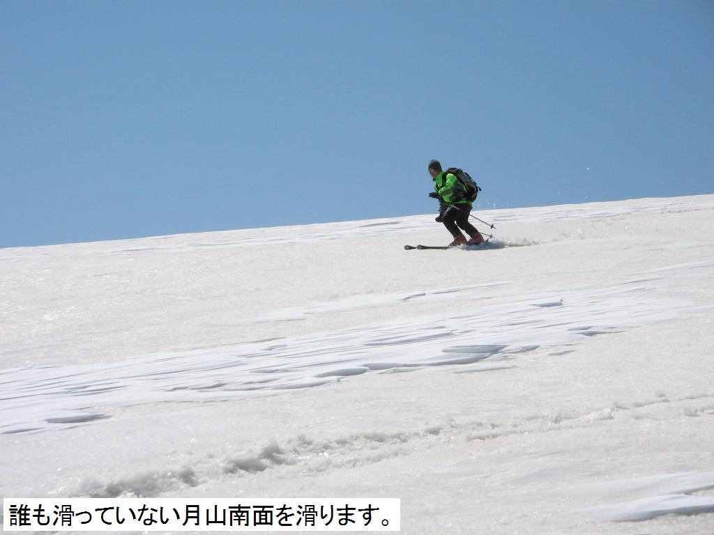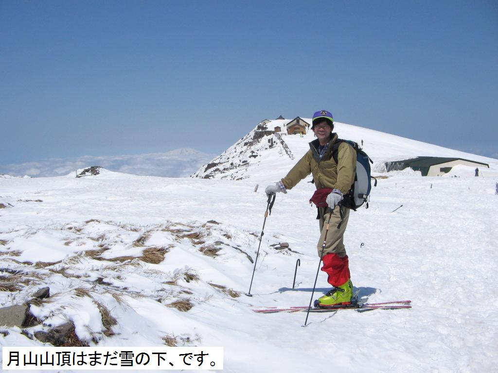 もその影響を少し受けましたが、ほぼ予定通り姥沢リフト上から登り始めます。今年の月山は残雪が多く