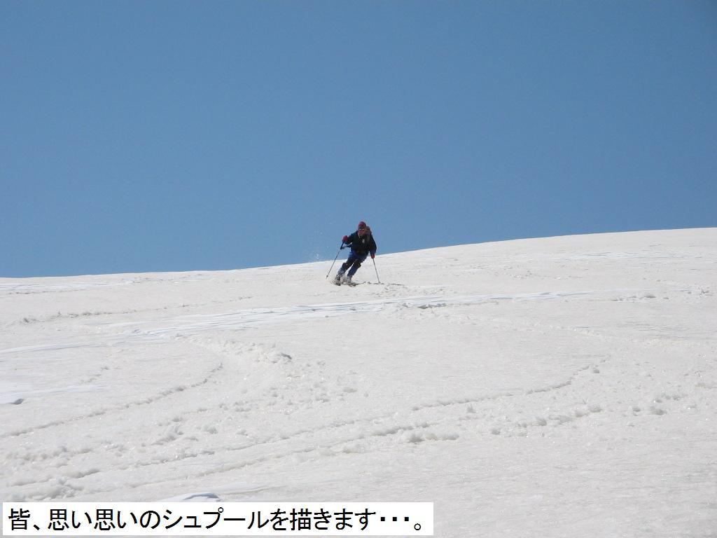雪質は最高・・・この日も皆思い思いに広い、広〜い斜面を滑ります。この日の仕上げは温泉後の『きっ
