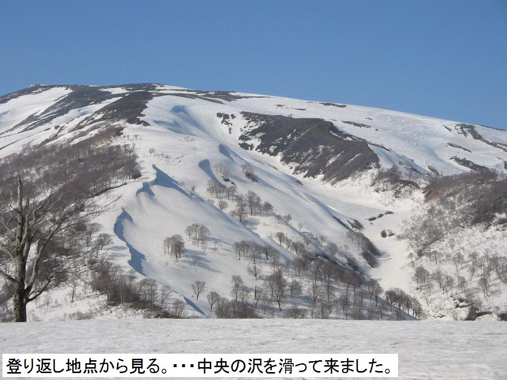 いに滑ります。沢を一しきり下ってからの登り返しは結構きつかったですが、東さんに車をピックアップ