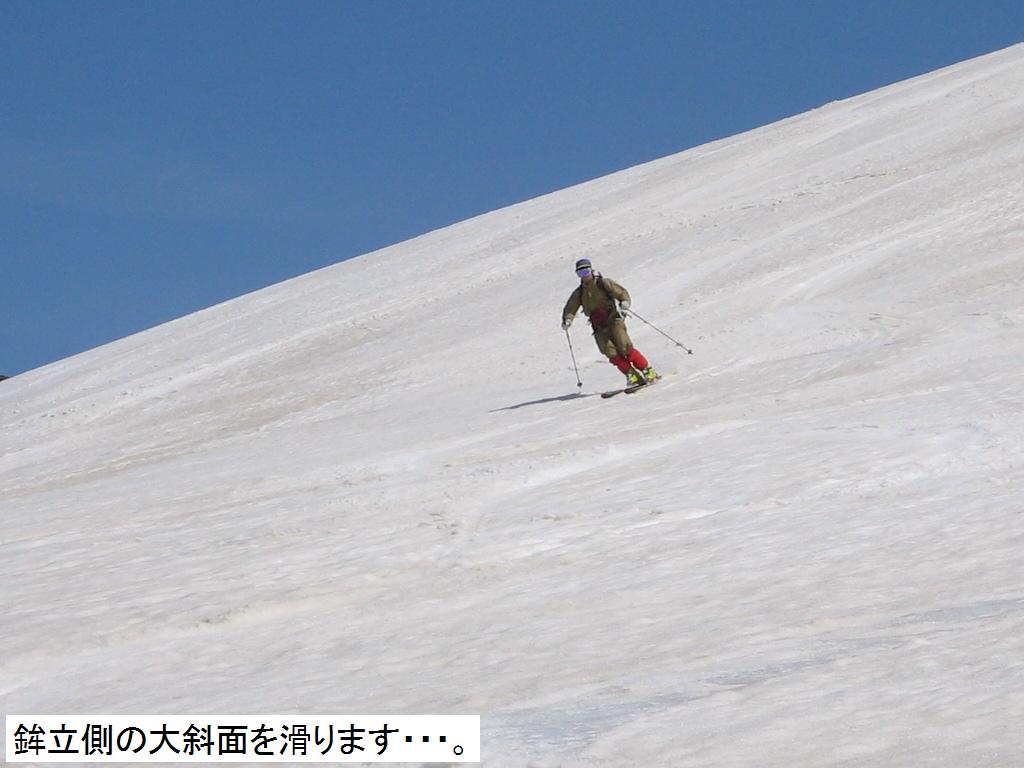 った事やかなり気温が低めの事から千蛇谷に下るのをやめ、外輪山を登りその途中から滑る事にしました。