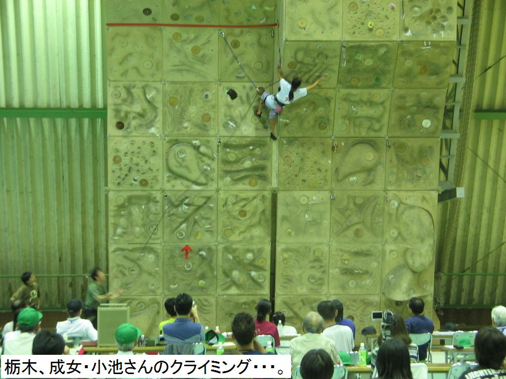 いルート設定の中、成女で1名、少年で2名の完登者が出て、会場は大きな拍手に包まれた。