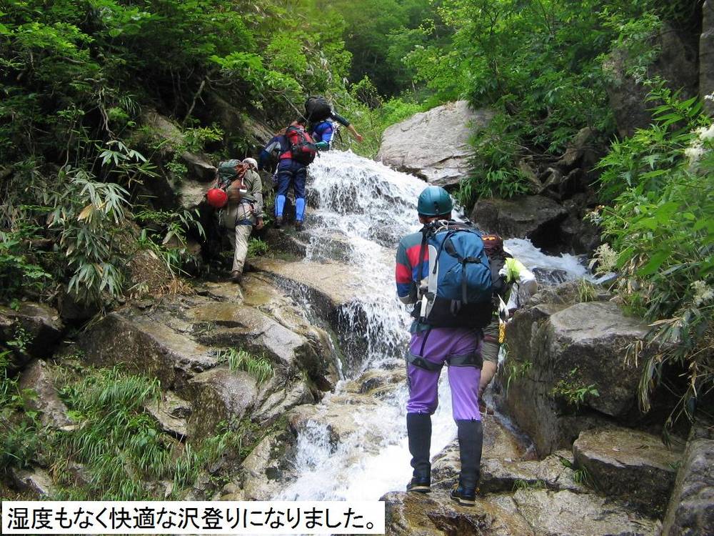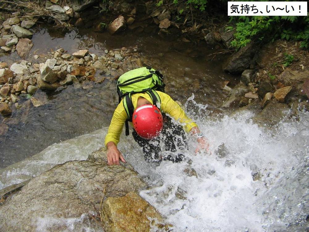 に、行く先々の小滝でシャワークライミングが楽しめます。湿度もほとんど感じず、 最高の沢登りとなりまし