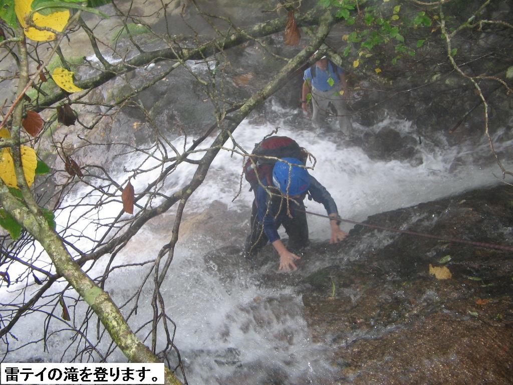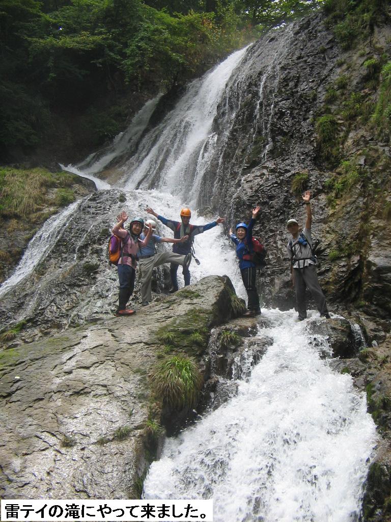 −−−11:05咆哮霹靂の滝−−−12:13雷テイの滝13:43−−−14:30遡行終了−−−15:10学校平