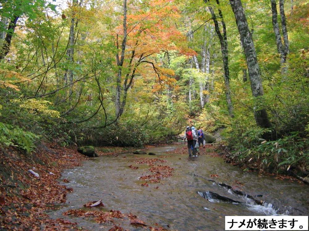 事前にナメがきれい、との情報を聞き、紅葉の頃是非歩いてみたいと思っていた。この日は、斉藤さんの奥さん