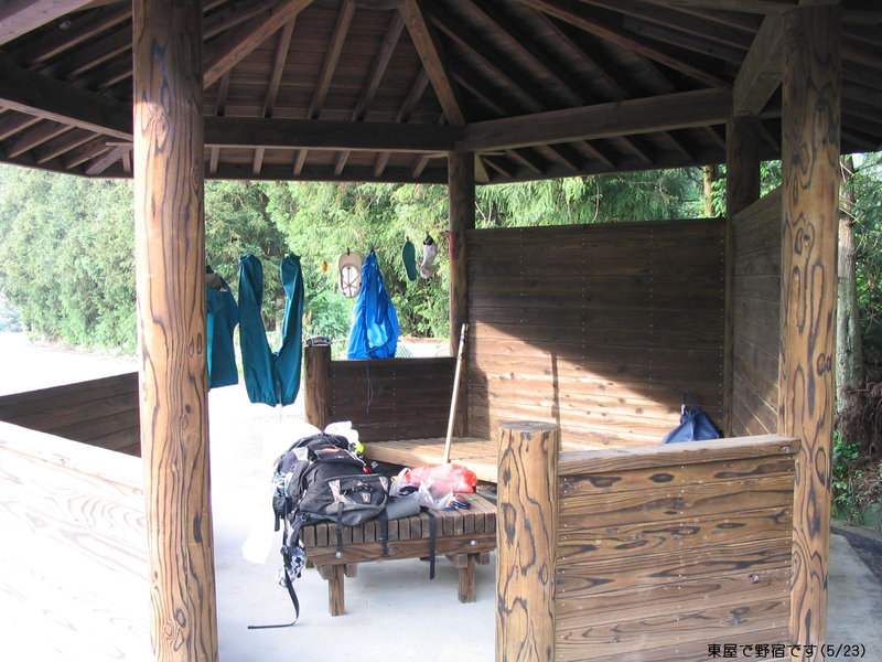 心配していた「野宿場所」については心配していたほどではありませんでした。一概には言えませんが東屋や