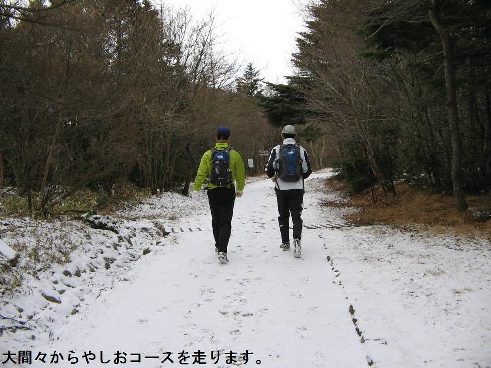 たばかりの新雪が・・・足腰にはとっても良い。さすがに登りを走る事はできないが早足でぐいぐい登る。ミツ