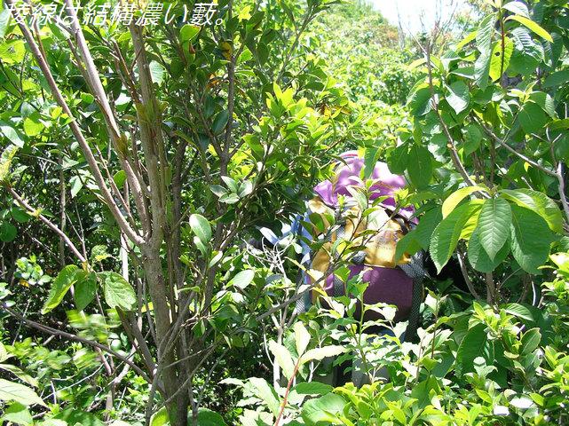 ここからのやぶ漕ぎがすごかった。早めに左の稜線に取り付いたのがいけない。稜線はツルとツゲなど手ごわかった。