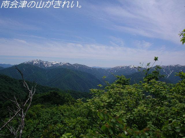 それでも三角点にたどり着き、雪が残る飯豊や窓明・丸山・朝日岳方面の眺望を藪を通して眺める。休憩も早々に下るこ