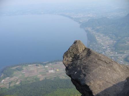 乗っているかの様な高度感〜。あっという間に、開聞岳山頂に着いた。