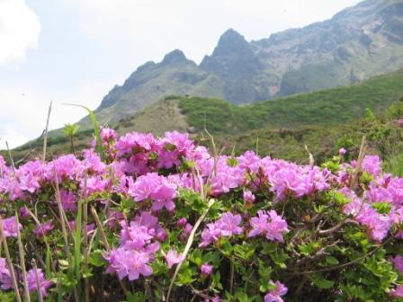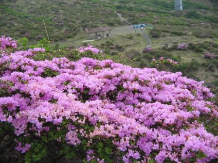 分の体力次第〜。登山口でミヤマキリシマが咲いていた。例年に比べ、開花時期が早いとの事。ミヤマキリシマが、