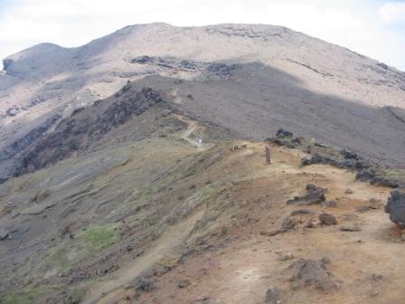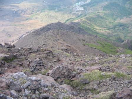中岳手前で高校生の団体と出会う。こちらもこんにちはの大合唱〜。やっぱ、阿蘇は人が多いのを痛感する。中岳