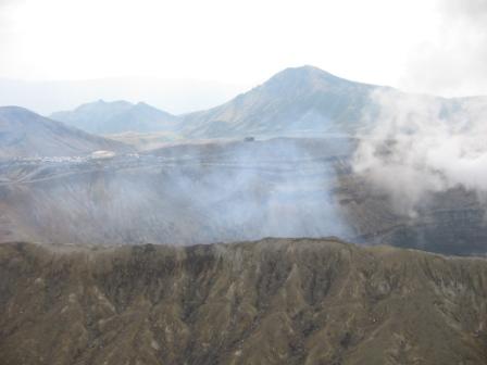 日も快晴の天気〜。しかも、祖母山のコースは結構タフだった。ダメもとで阿蘇に向う。天気は良い〜。後は、自