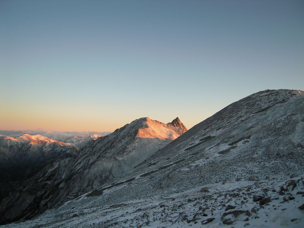 ってきた。ひたすら西尾根を登る。森林限界のあたりからミゾレが雪に変わった。滑らないように気をつけて登る。