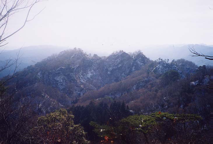 三角点より鍋足山(左端)と従走路の各ピークを眺める