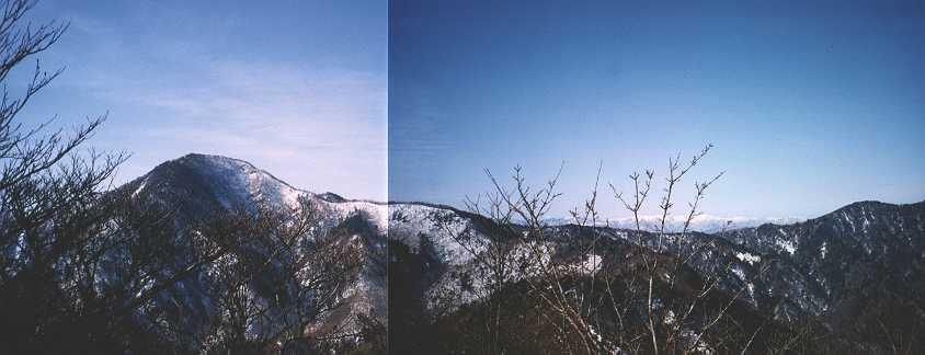 剣が峰(1590M)の下りから縦走路を眺める。(右手やや奥が会津駒ケ岳、右手が前黒山、中央から左手が釈迦ケ岳への縦走路)
