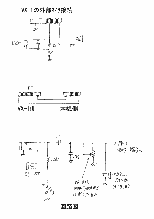 マイクジャックを差すとVX-1のスピーカーも切れてしまうので、本機に小さなスピーカーを