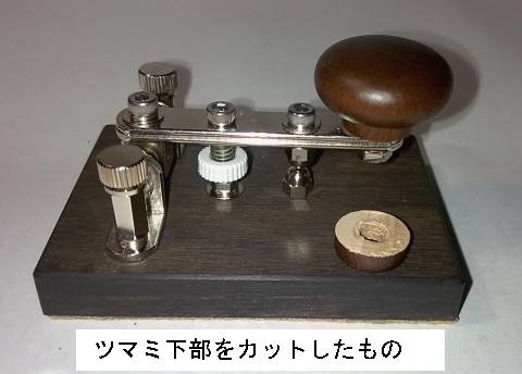 右下の物はカットしたツマミ下部です。 写真からも判るように、カット面は木材の色のままで塗装はしてありません。