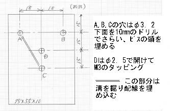 材料は厚さ10mmのものです。幅55mm、奥行き75mm ですが、奥行きは「誰でも作れるエレキー